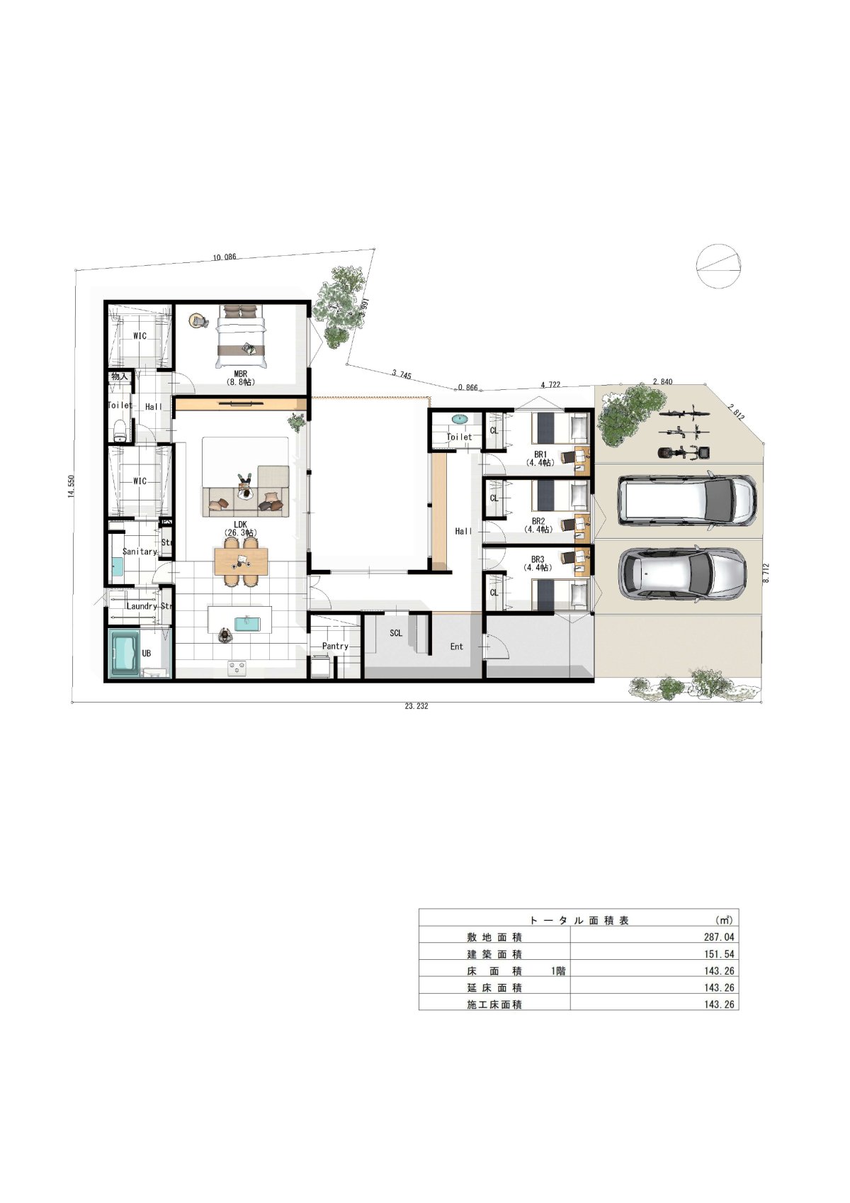 | 土地面積 | 289.34㎡(87.52坪) | 建物面積 | 147.4㎡(44.58坪) | ||||||||||