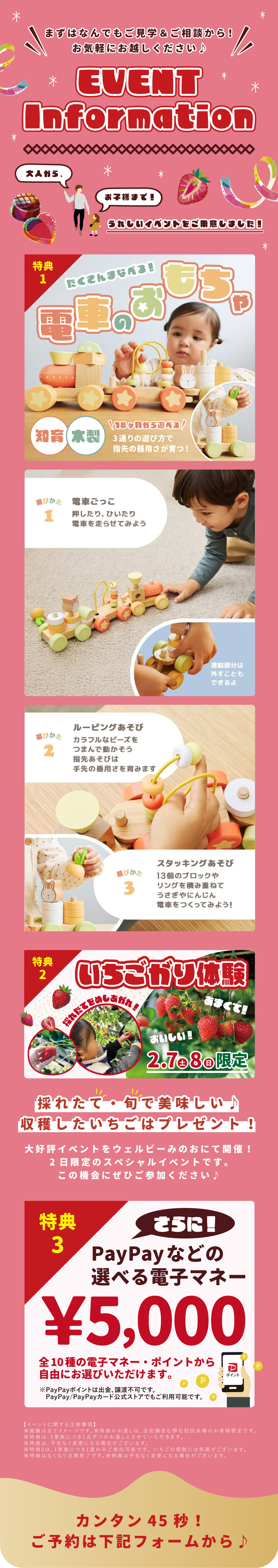 【期間限定】大人気の出張いちご狩り体験をウェルビーみのおにて開催!さらに今だけ電車の知育おもちゃをPRESENT!