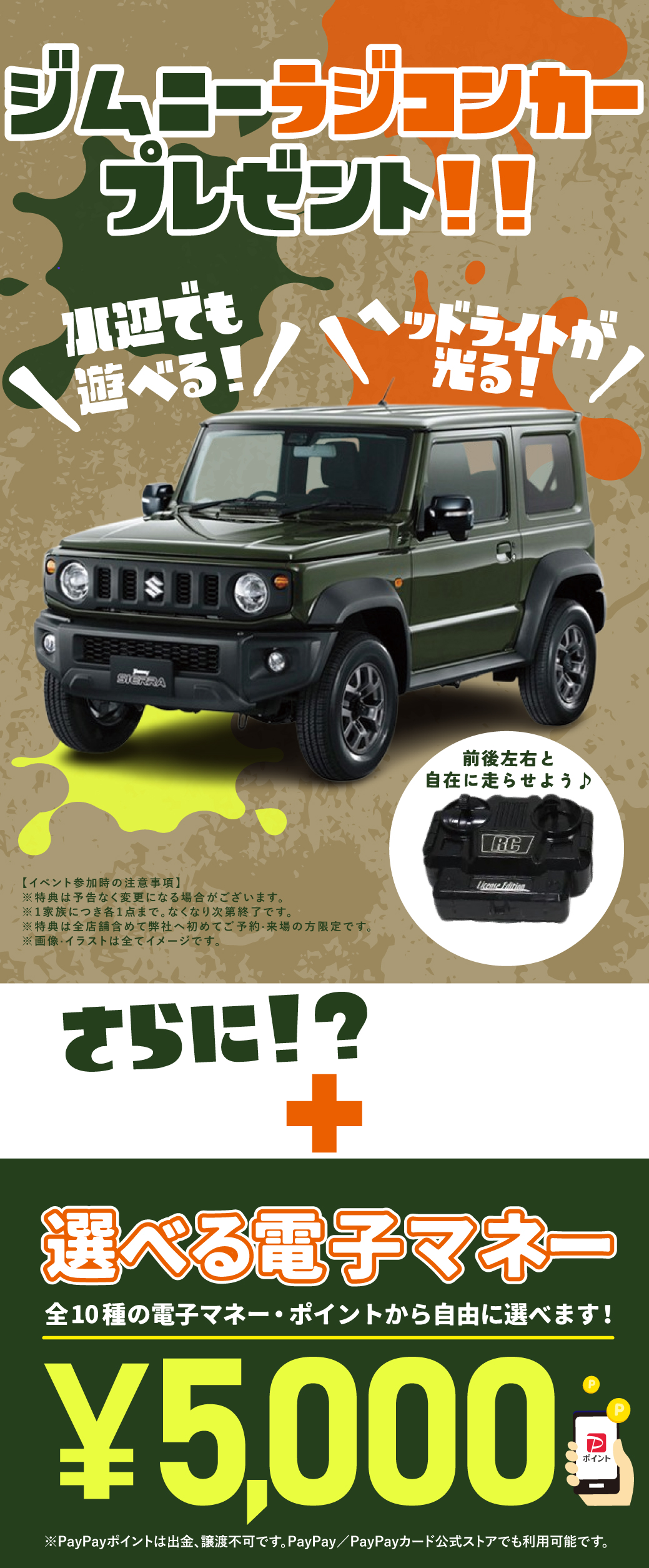 【WEB限定|桧家花博】ジムニーのラジコンと選べる電子マネー5,000円分がもらえる!豪華特典つきのお家相談会♪