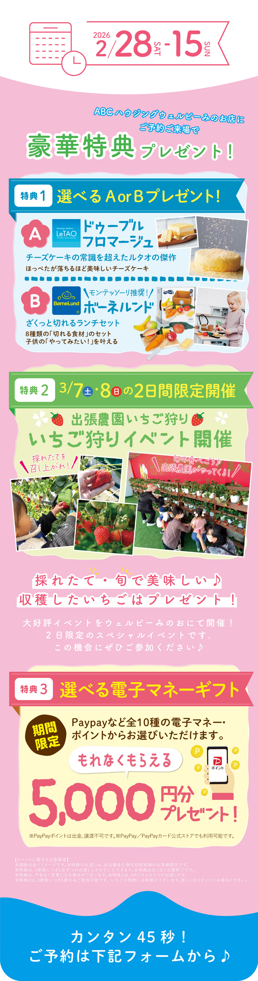 【春先取り|桧家みのお】大人気!選べる特典「ルタオのチーズケーキ」or「モンテッソーリ推奨の知育おもちゃ」+「旬のいちご狩り」で全館空調フェアを満喫しよう!