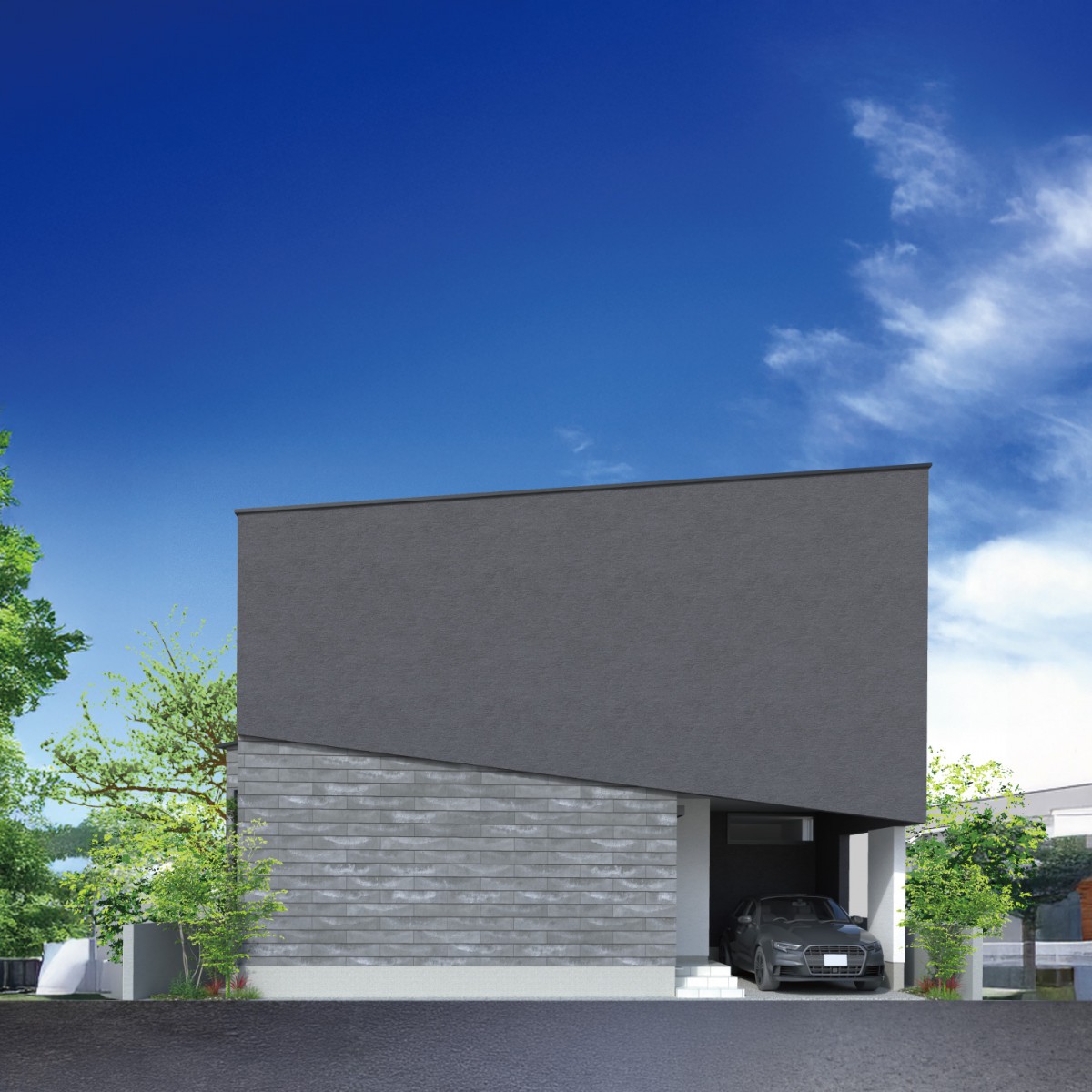 2つの素材を用いて重厚感と質感あふれる佇まいを演出。
