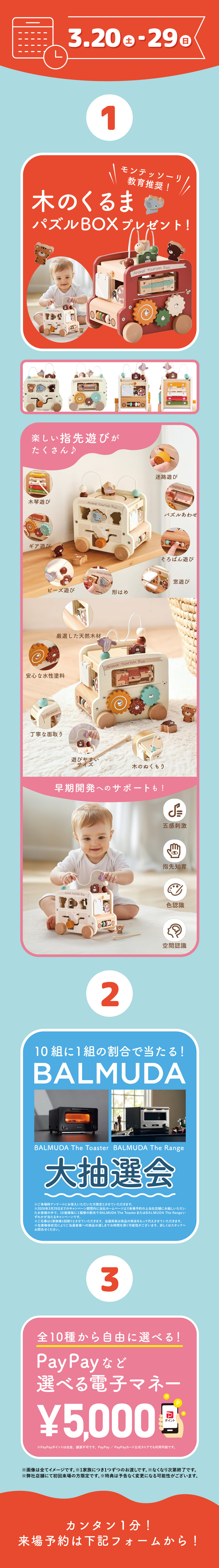 【WEB限定|桧家花博】モンテッソーリ教育にオススメ、「木のくるま」のおもちゃをプレゼント!さらに、バルミューダが当たる!?大抽選会を開催✨